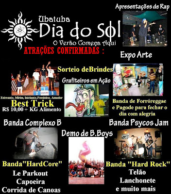 A galera da praça de skate, através do do blog yesk8.blogspot.com, convida a todos a participarem da manifestação do DIA DO SOL, marcando o solsticio do verão dia 22 de dezembro das 10 às 20 horas.